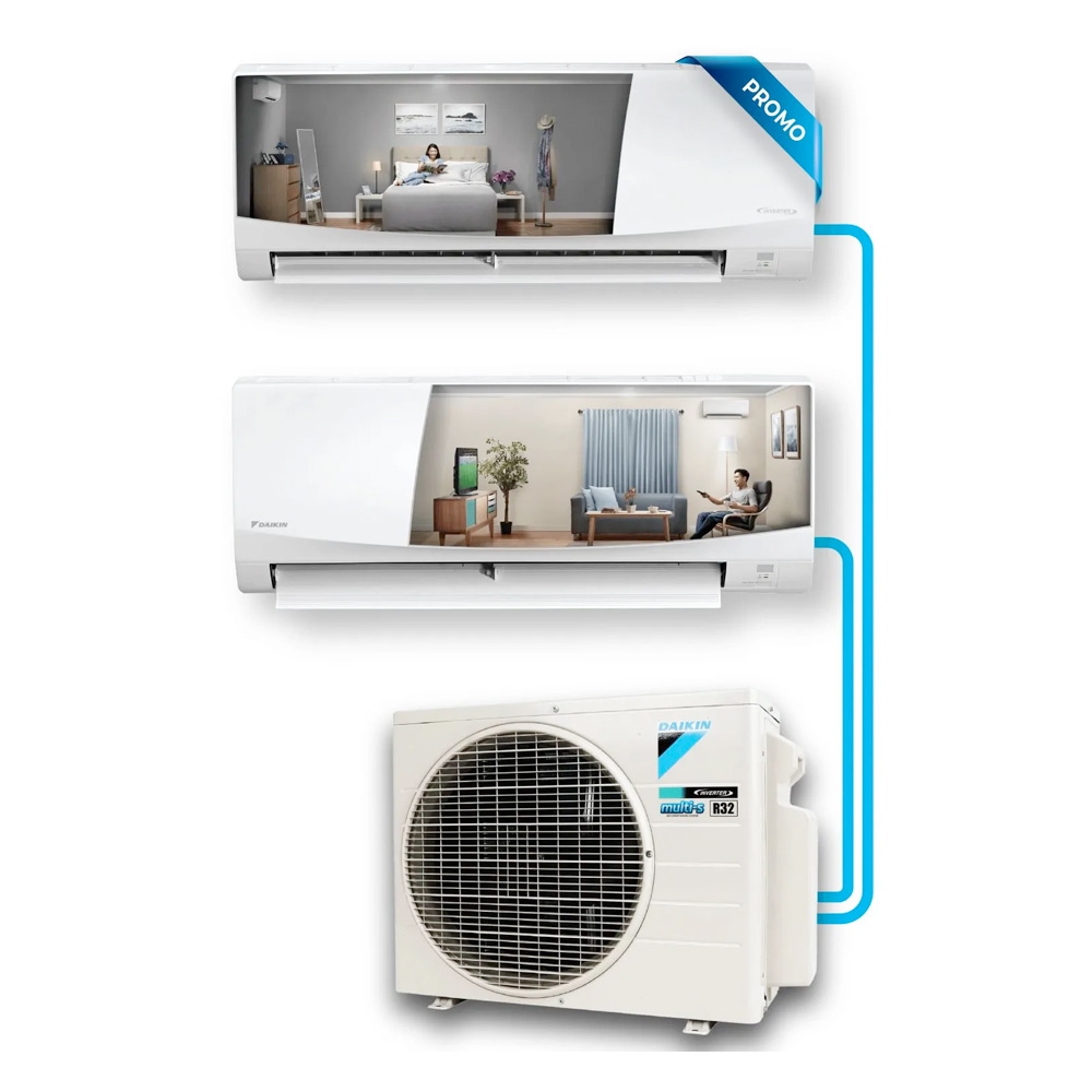Menjawab kebutuhan akan hunian di Indonesia, Daikin muncul dengan Multi-S 2 koneksi. Dengan 3 keunggulan utama, yaitu hemat tempat, hemat energi dan hemat listrik. Hanya dengan 1 outdoor dapat mengoperasikan 2 unit indoor sekaligus menggunakan daya listrik sebesar 380 Watt (Low Watt Mode, Level 2).
