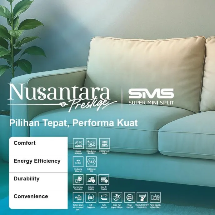 Bodi kompak AC single split standar DAIKIN ini membuatnya dinamai AC SMS (Super Mini Split). Punya semua hal esensial untuk mengalirkan kesejukan dalam ruang, dengan mode Powerful untuk mempercepat pendinginan. Tersedia opsi kendali via aplikasi smartphone.