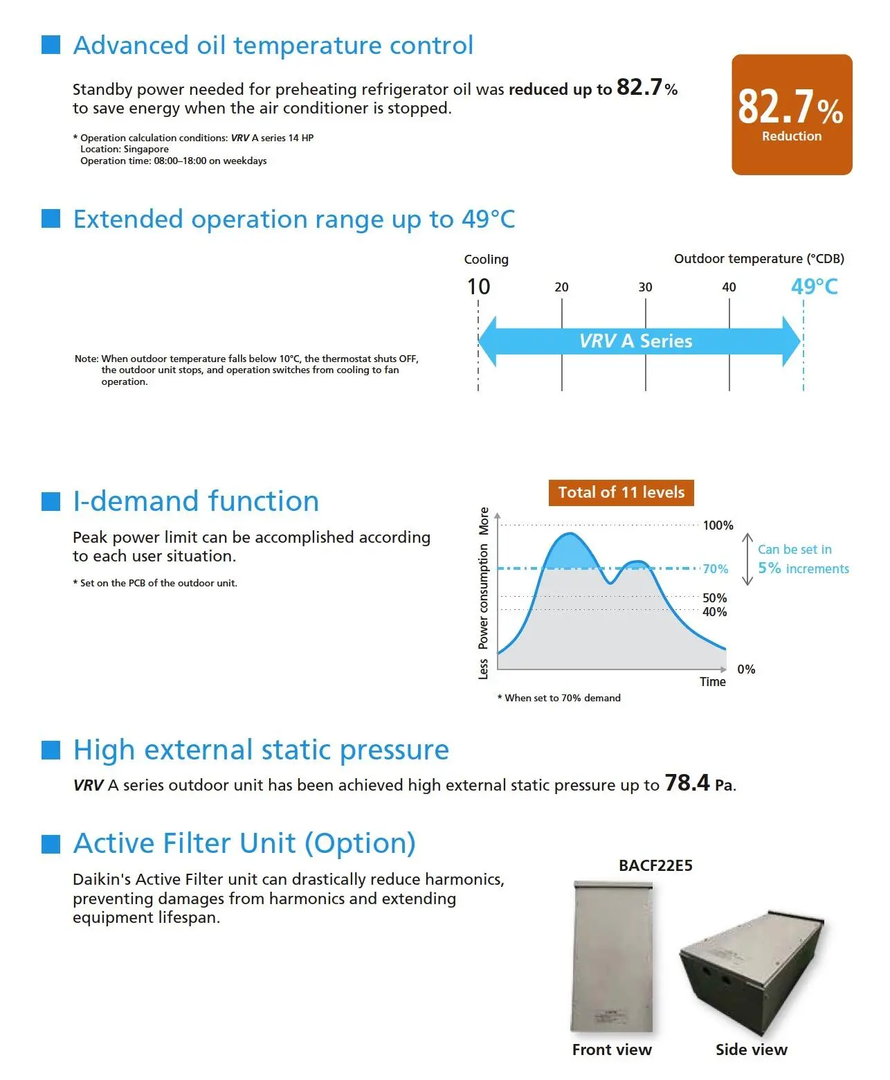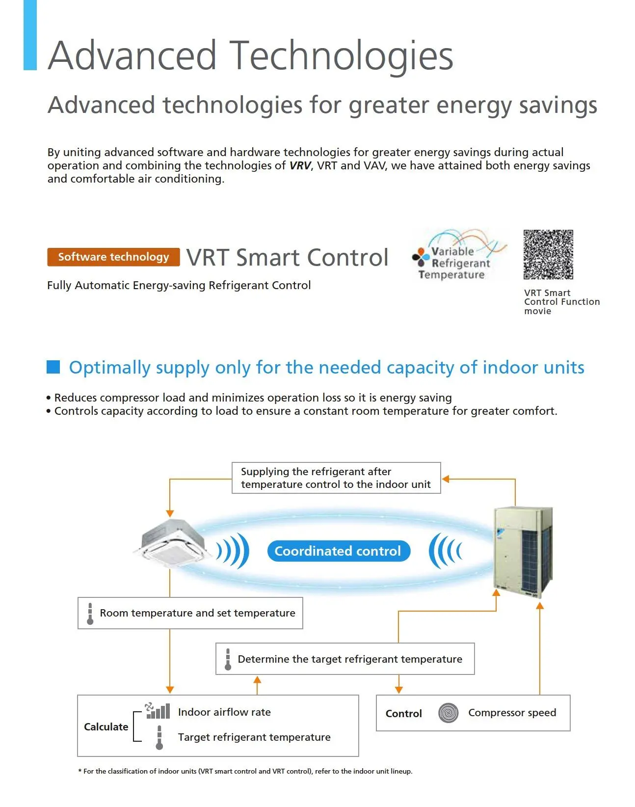 Pertama kali diluncurkan di Jepang pada tahun 1982, sistem Daikin VRV telah diterima di pasar dunia selama lebih dari 35 tahun. Kini, Daikin dengan bangga memperkenalkan seri VRV A yang baru. Dengan menggabungkan teknologi VRV, VRT, dan VAV, kami telah mencapai penghematan energi sekaligus kenyamanan AC.